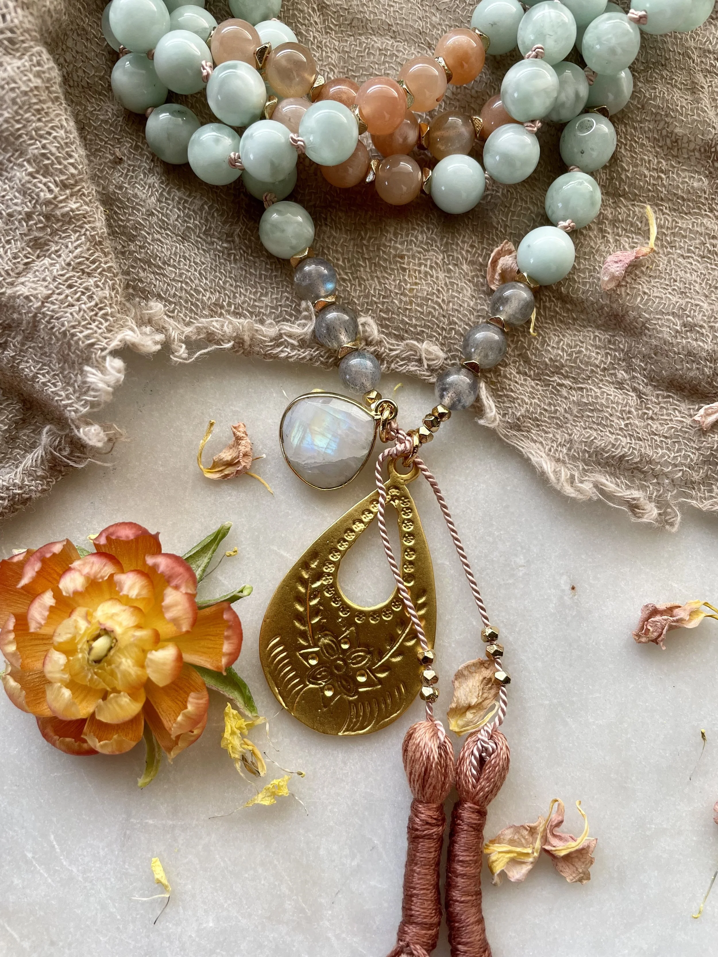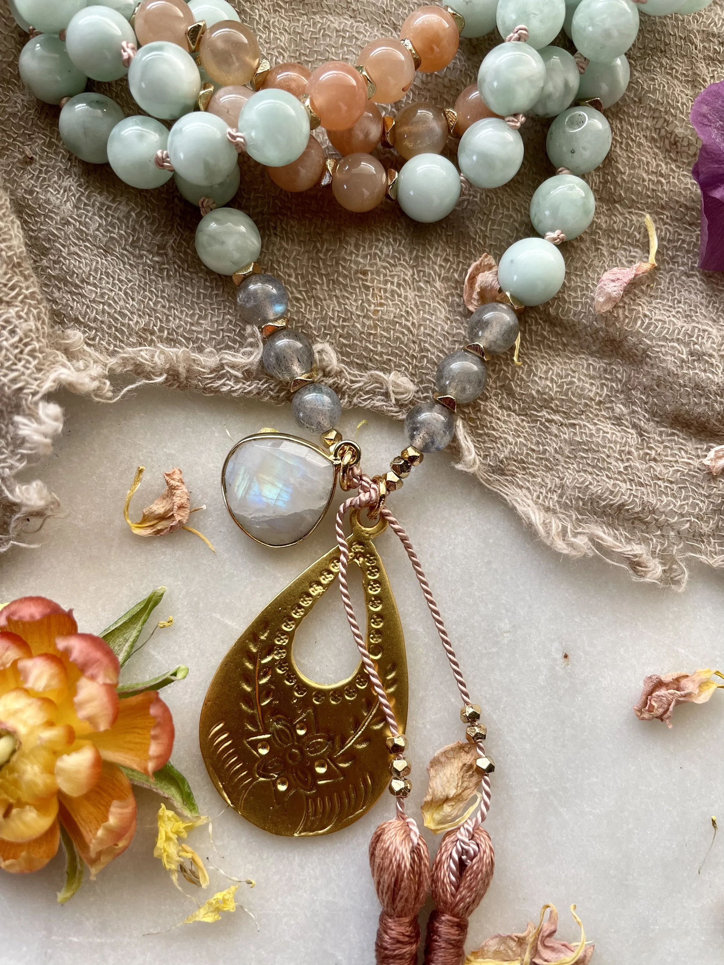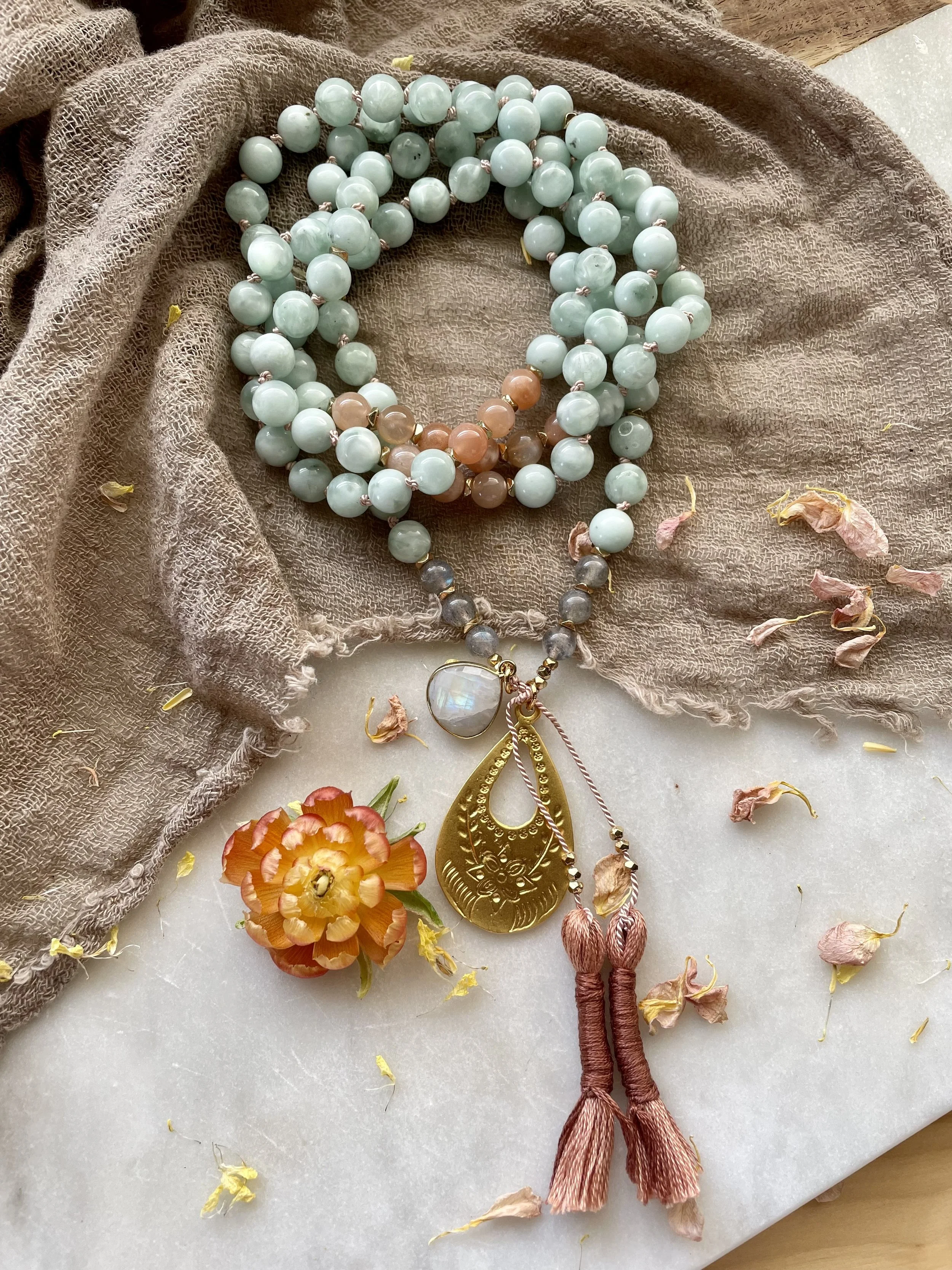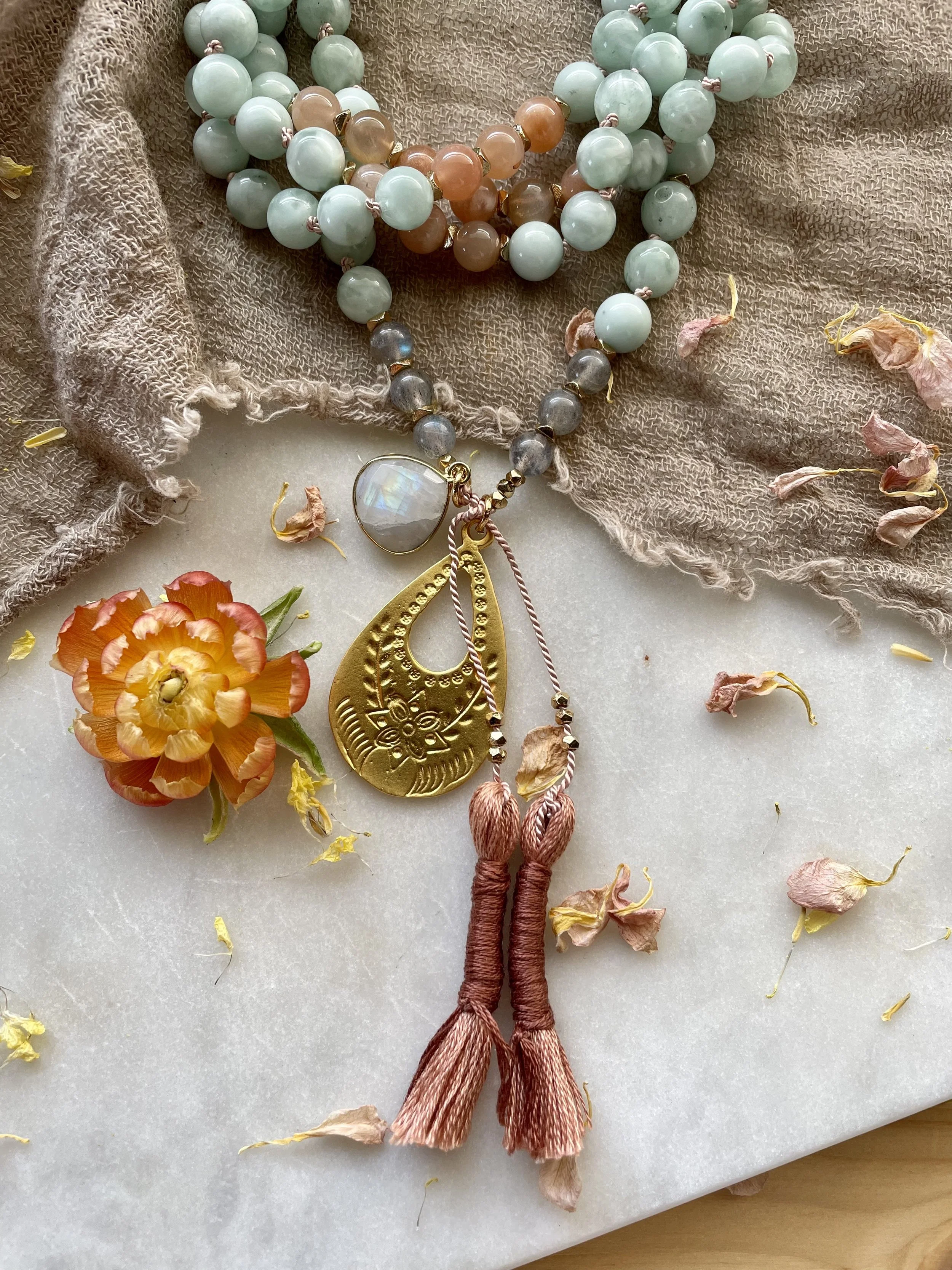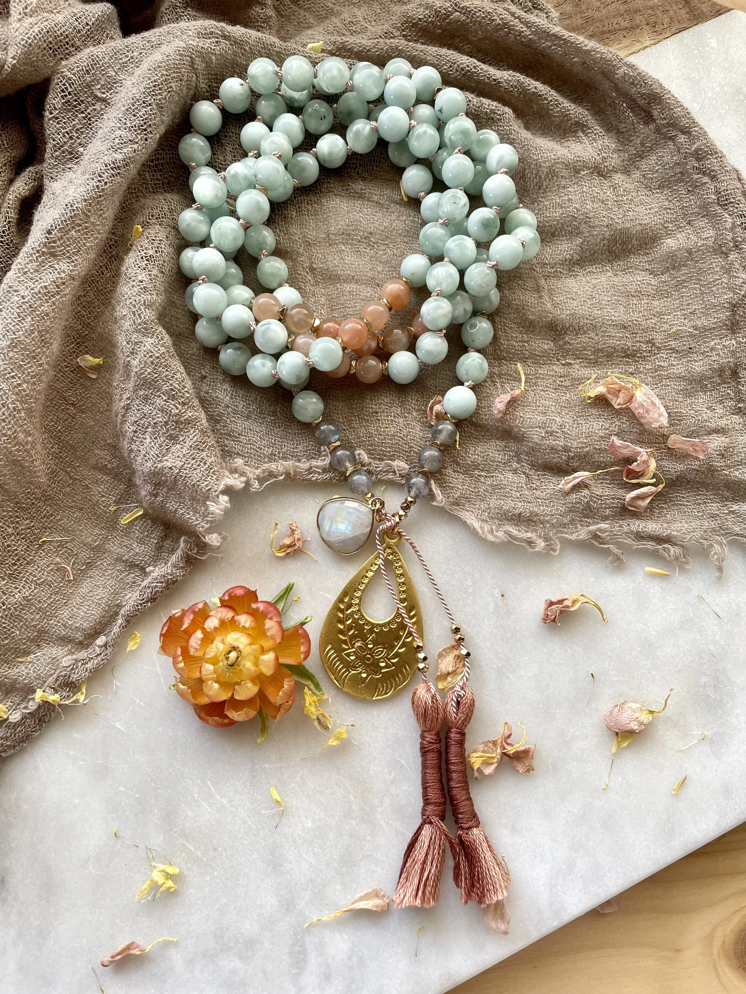 Touch pieces that serve as a reminder of your innate wisdom, kindness and compassion. Pieces that spark your light to shine unapologetically and speak your truth even if your voice shakes. May your chosen Mala expand and ignite you in the ways that your heart is calling you forward in this world.